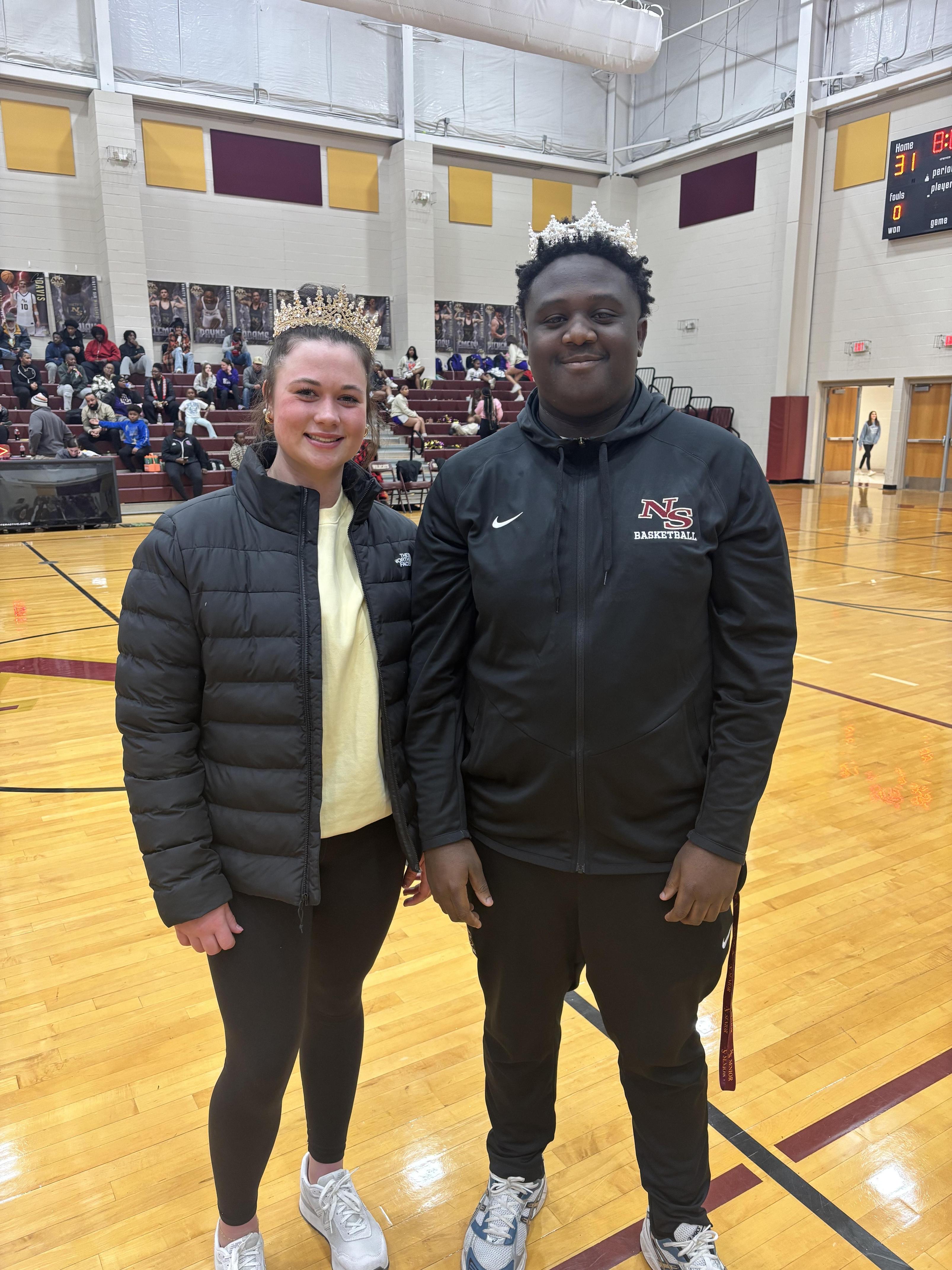 Last year's winners, Jordan Swink and Adela Hernandez returned to NSHS to crown Tymere and Katie during halftime of the boys' basketball game. Thank you to Student Council for organizing Winterfest Week!